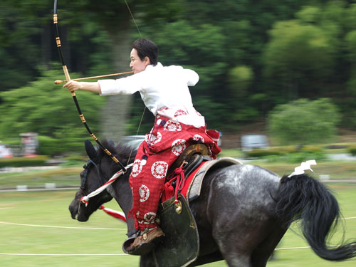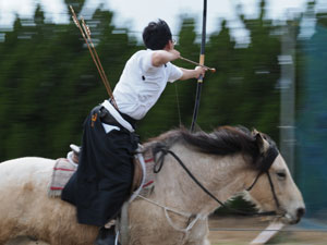 我々と一緒に、小笠原流 弓馬術(流鏑馬)の